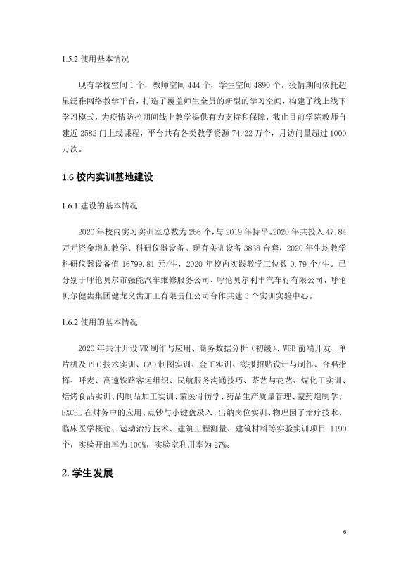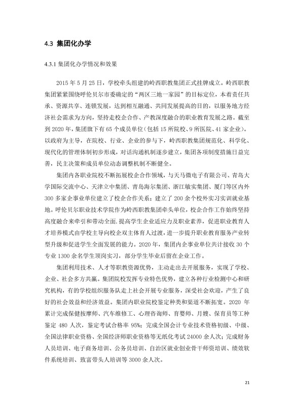 呼伦贝尔职业技术学院附属中职教育学校中等职业教育年度质量报告(2020)