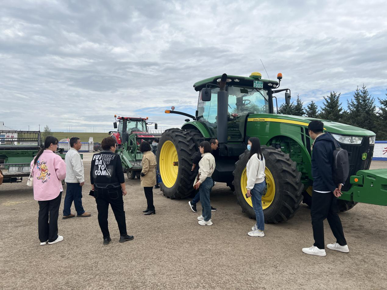 随后,参观组来到了农牧业设施区和人工牧草地,了解了先进的设施设备及农业机械化智能化对农业发展的积极影响,如提高农业生产效率、减轻农民体力劳动负担、降低生产成本等。