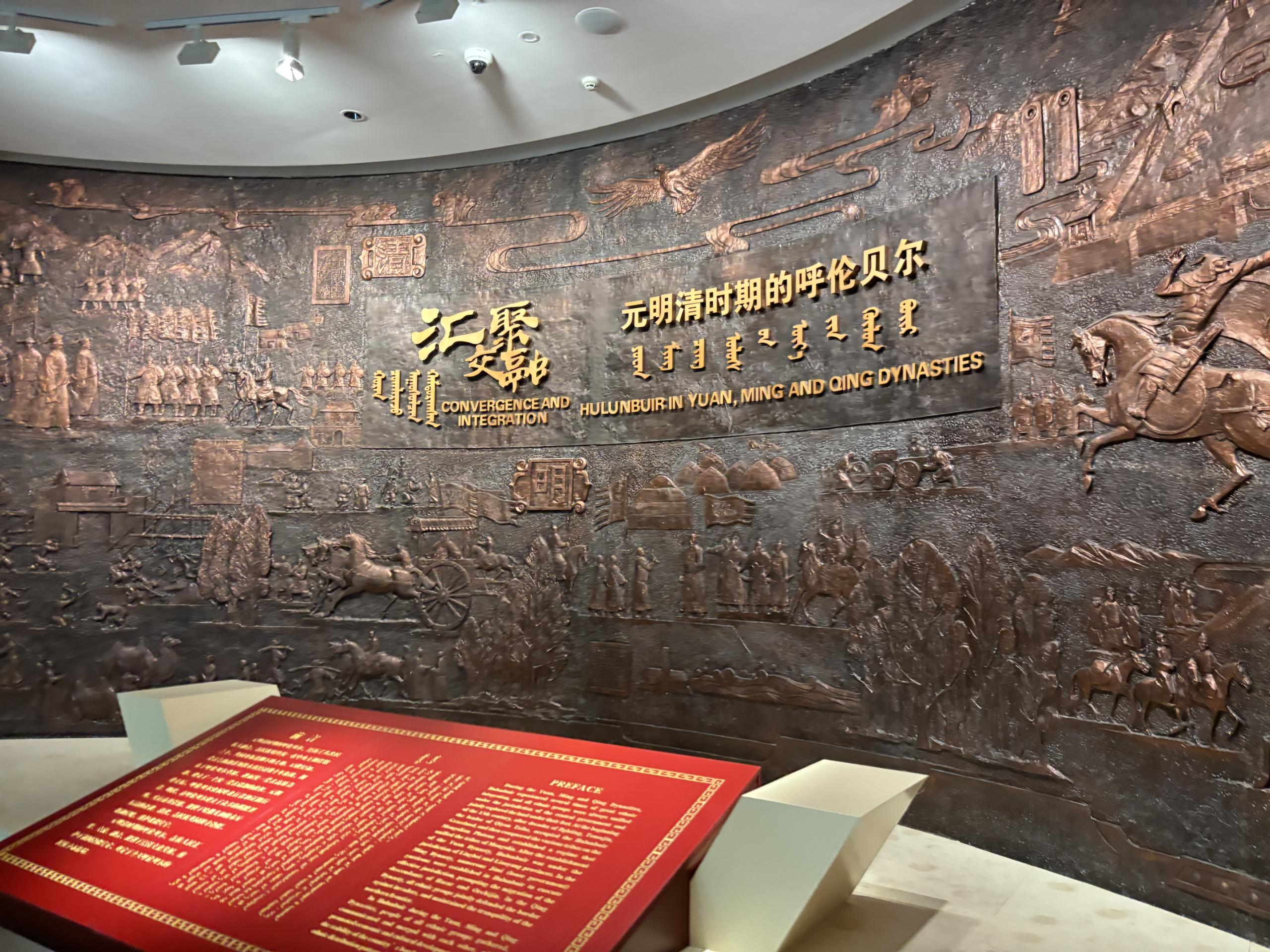 实践团抵达呼伦贝尔历史博物馆后,成员们仿佛穿越了时空隧道,被一件件珍贵的历史文物深深吸引。从古老的狩猎工具到精美的民族服饰,从生动的历史场景再现到详尽的文字解说,每一件展品都诉说着这片土地上各民族共同奋斗、和谐共生的故事。在讲解员的引导下,同学们不仅了解了呼伦贝尔地区从远古至今的历史变迁,更深刻体会到了各民族在长期的交往交流交融中形成的深厚情谊和共同的文化根基。